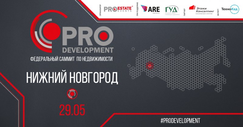 29 мая в отеле Sheraton Нижний Новгород Кремль пройдет Федеральный саммит по недвижимости PRO Development. Участие в саммите будет открытое. Организаторами мероприятия выступят PROEstate Events и учебный центр Academy of Real Estate.
